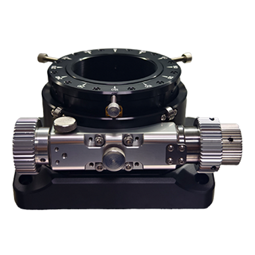 2.5 - inch dual -speed focusing base, connected to the correcting lens by threadsintegrated with a dedicated bearing rotator (CAA) and an angle scale. lt rotatessmoothly without resistance and is equipped with a focal - plane adjustment device